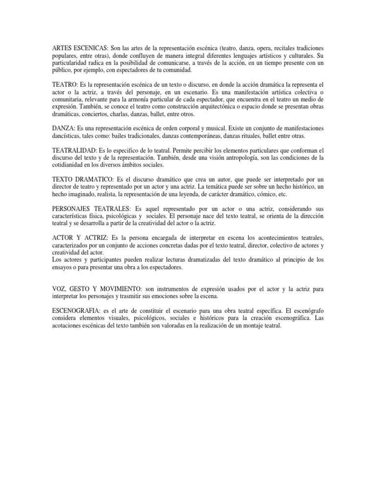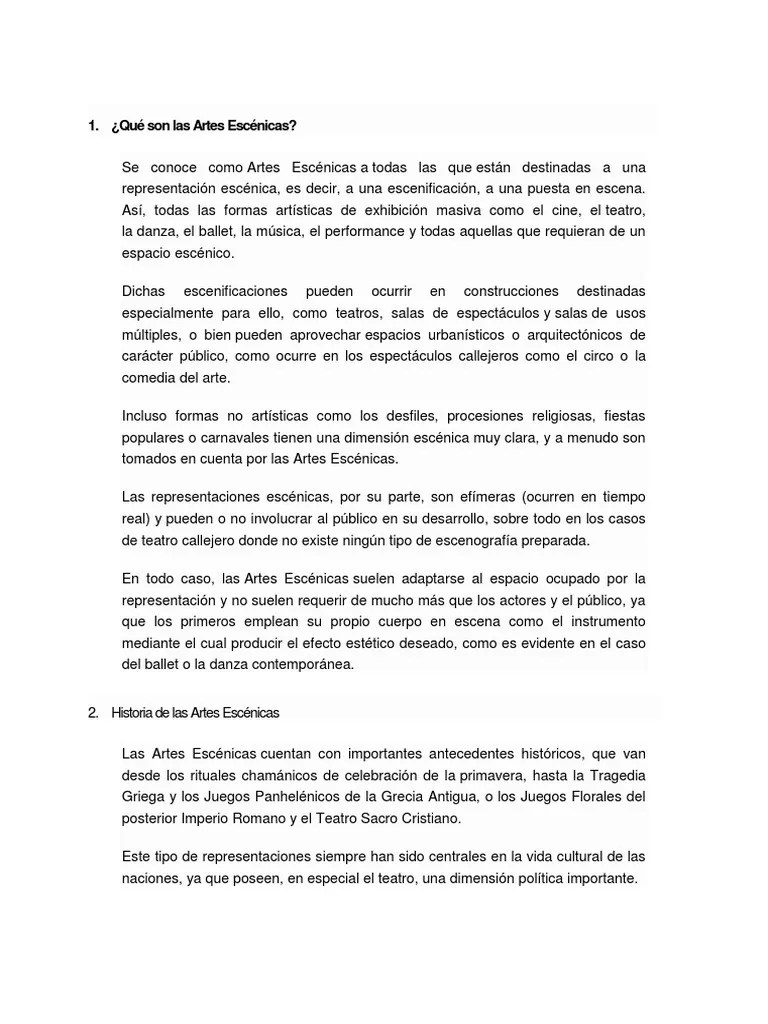 Las artes escénicas son todas aquellas manifestaciones artísticas creadas para ser representadas sobre un escenario.1 aunque son fundamentalmente tres disciplinas artísticas las que son representadas en las artes escénicas (teatro, danza y música) estas a su vez se subdividen o se conjugan en otras tantas, como por ejemplo la ópera, la zarzuela, el teatro musical, el.. Las artes escénicas son todas aquellas manifestaciones artísticas creadas para ser representadas sobre un escenario.1 aunque son fundamentalmente tres disciplinas artísticas las que son representadas en las artes escénicas (teatro, danza y música) estas a su vez se subdividen o se conjugan en otras tantas, como por ejemplo la ópera, la zarzuela, el teatro musical, el.. Las artes escénicas son todas aquellas manifestaciones artísticas creadas para ser representadas sobre un escenario.1 aunque son fundamentalmente tres disciplinas artísticas las que son representadas en las artes escénicas (teatro, danza y música) estas a su vez se subdividen o se conjugan en otras tantas, como por ejemplo la ópera, la zarzuela, el teatro musical, el.